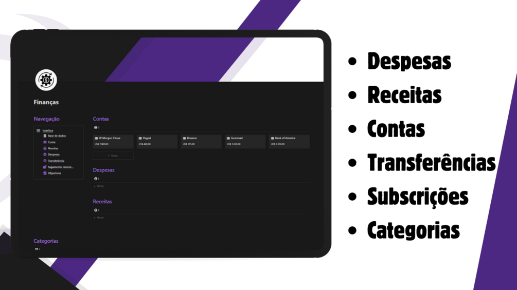 Categorias: Organize as suas finanças em categorias personalizadas, facilitando a análise e a otimização do seu orçamento.